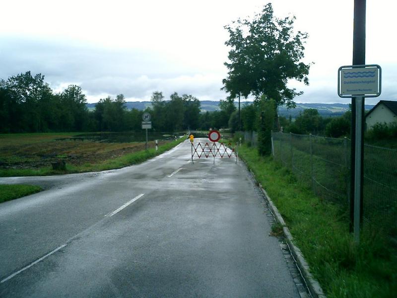 the flooded out roadway to Sins, Switzerland